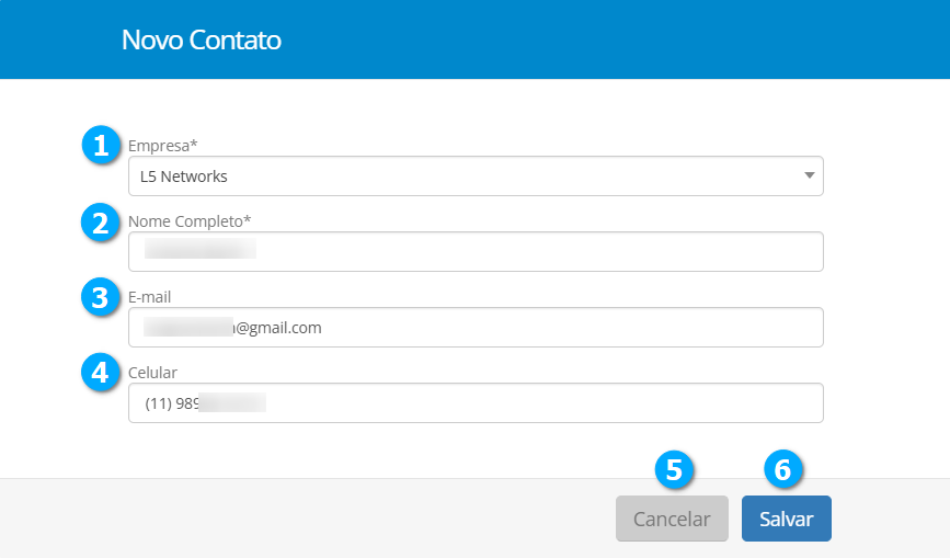 Enviar (3) - botão para enviar a solicitação de acesso, o contato irá receber um e-mail com uma chave de acesso temporária