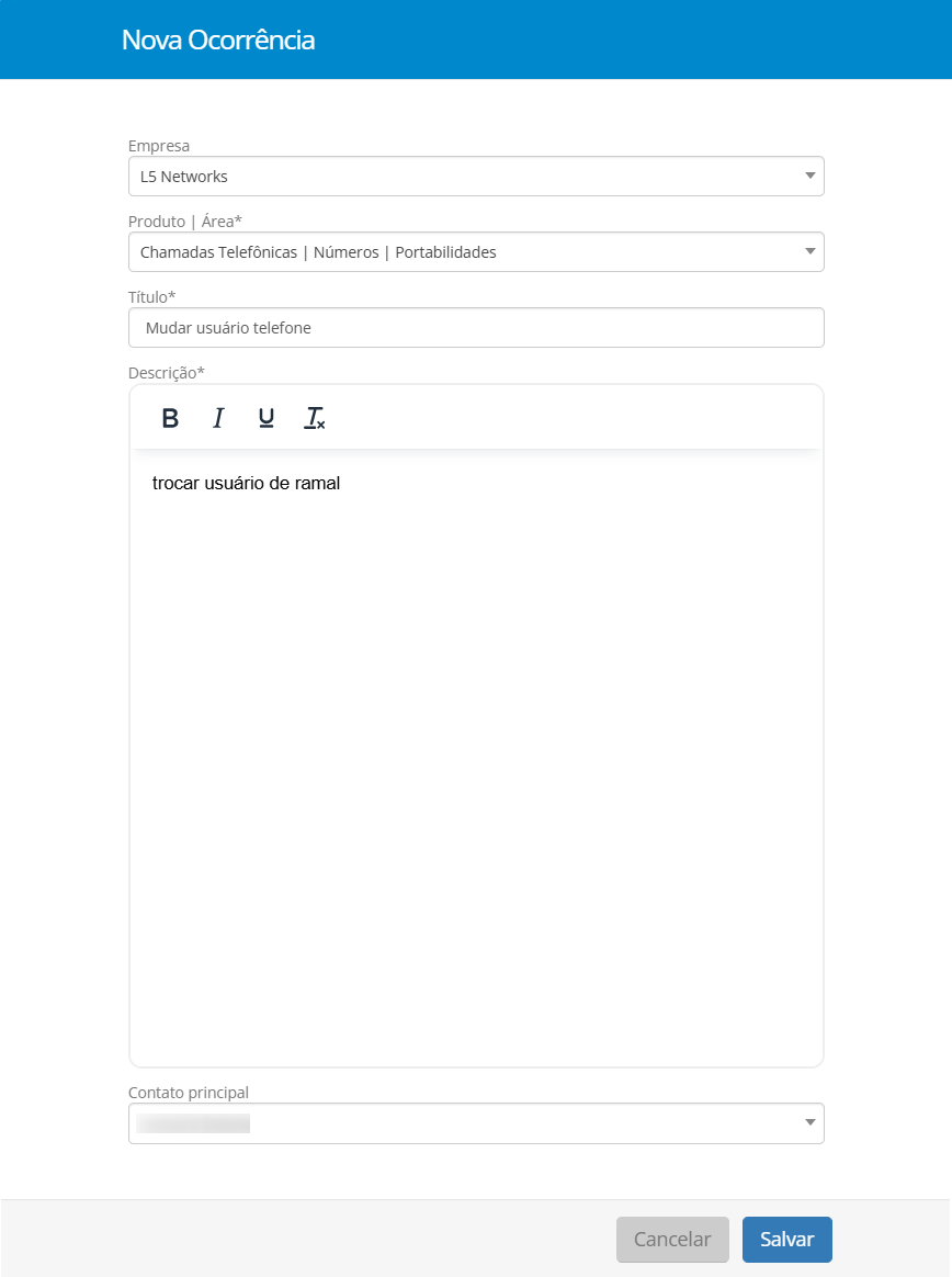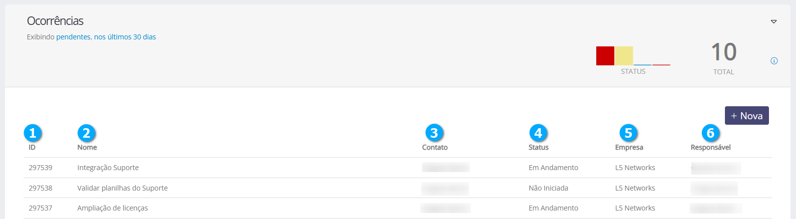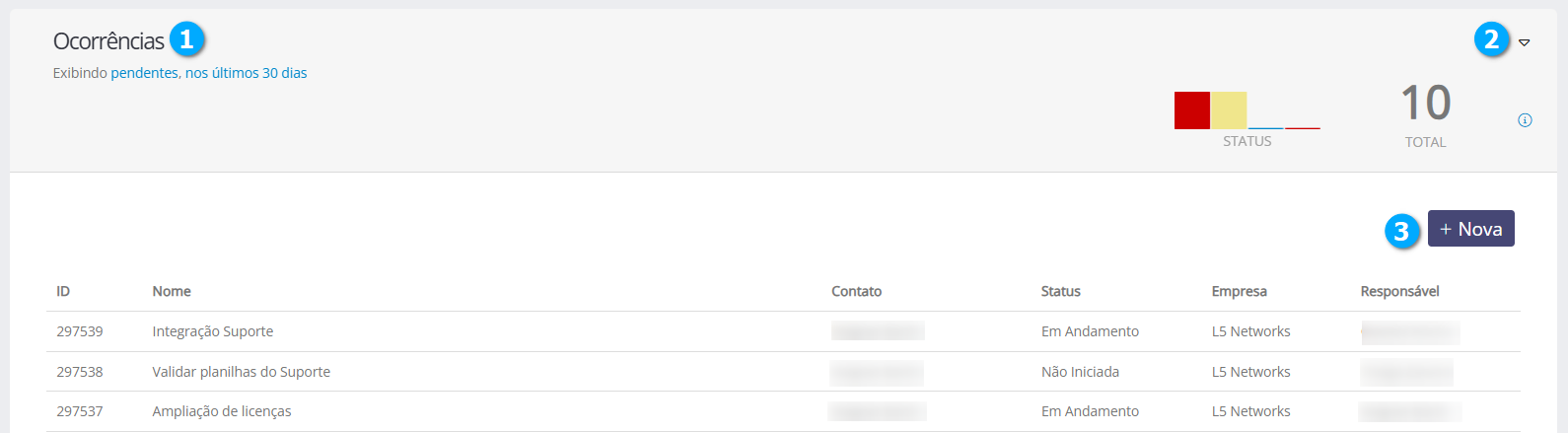 Contato (3) - mostra o nome do contato que abriu a ocorrência