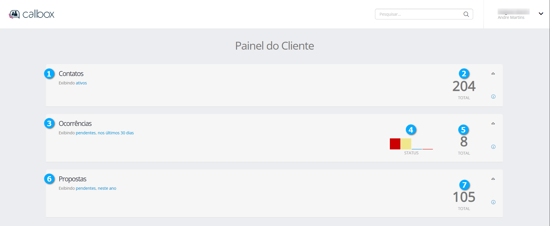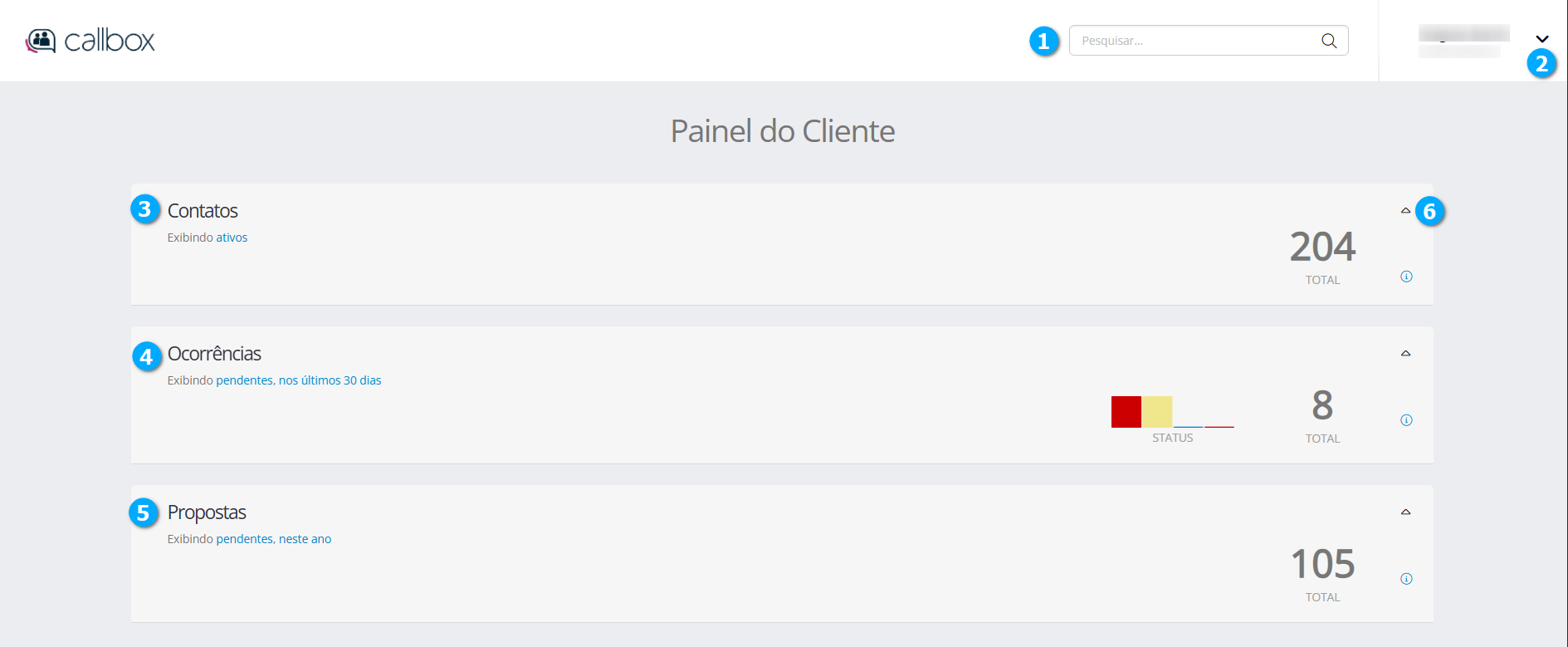 No painel de clientes podemos acompanhar as ocorrências e criar novas, para mais ações é necessário que o usuário acesse o módulo de ocorrências do Callbox.