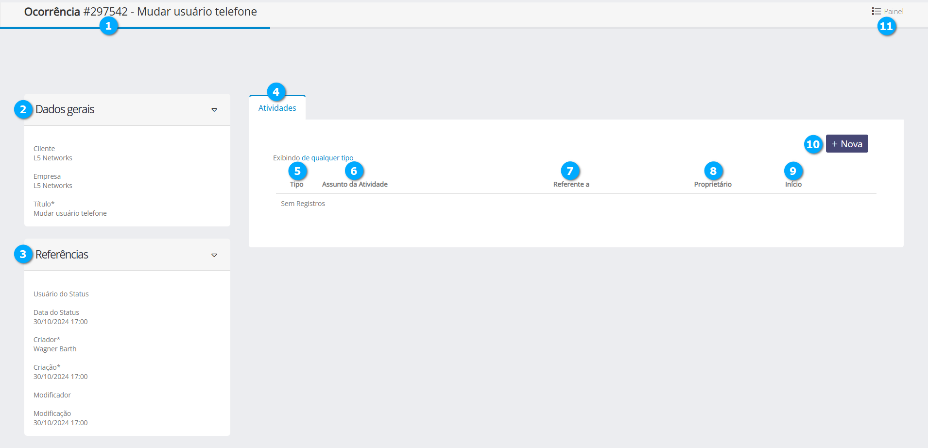 Número da ocorrência (1) - mostra o número da ocorrência aberta