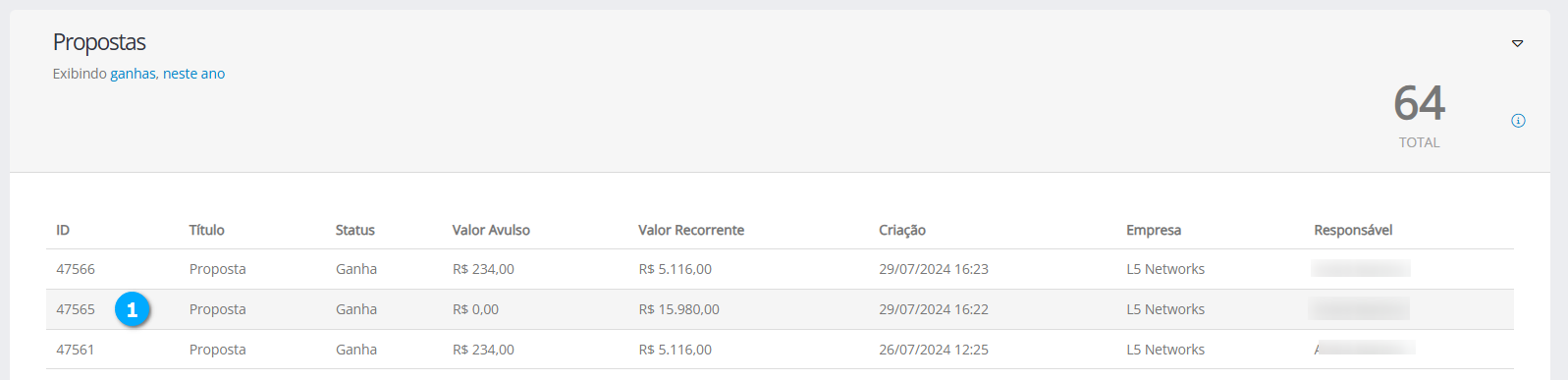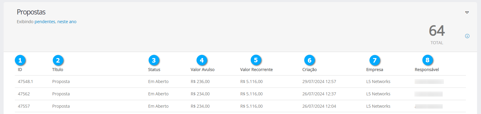 Valor Recorrente (5) - mostra o valor recorrente caso a proposta tenha este tipo