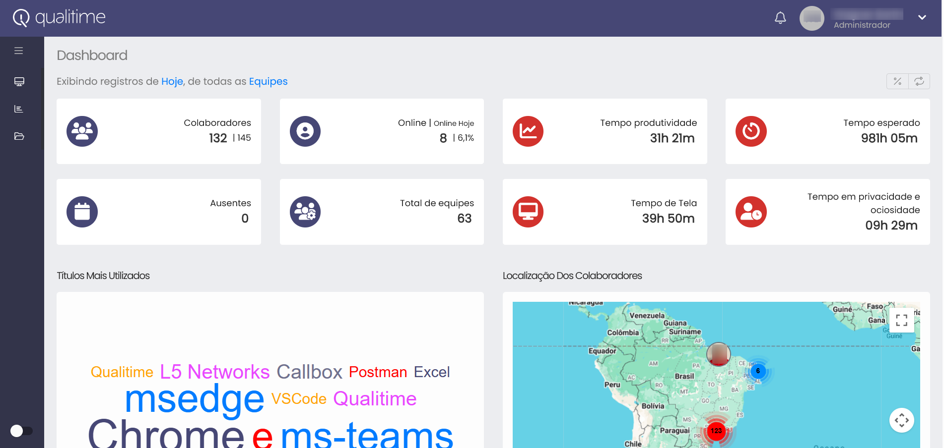 Ao acessar o Qualitime você será direcionado ao Dashboard, uma tela contendo de maneira centralizada, um conjunto de informações e indicadores.