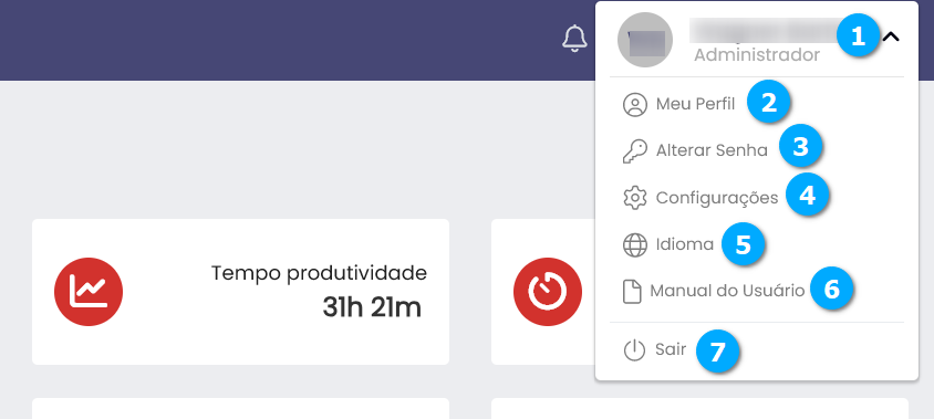 Clicando no botão do menu superior (1), obtemos o acesso as: