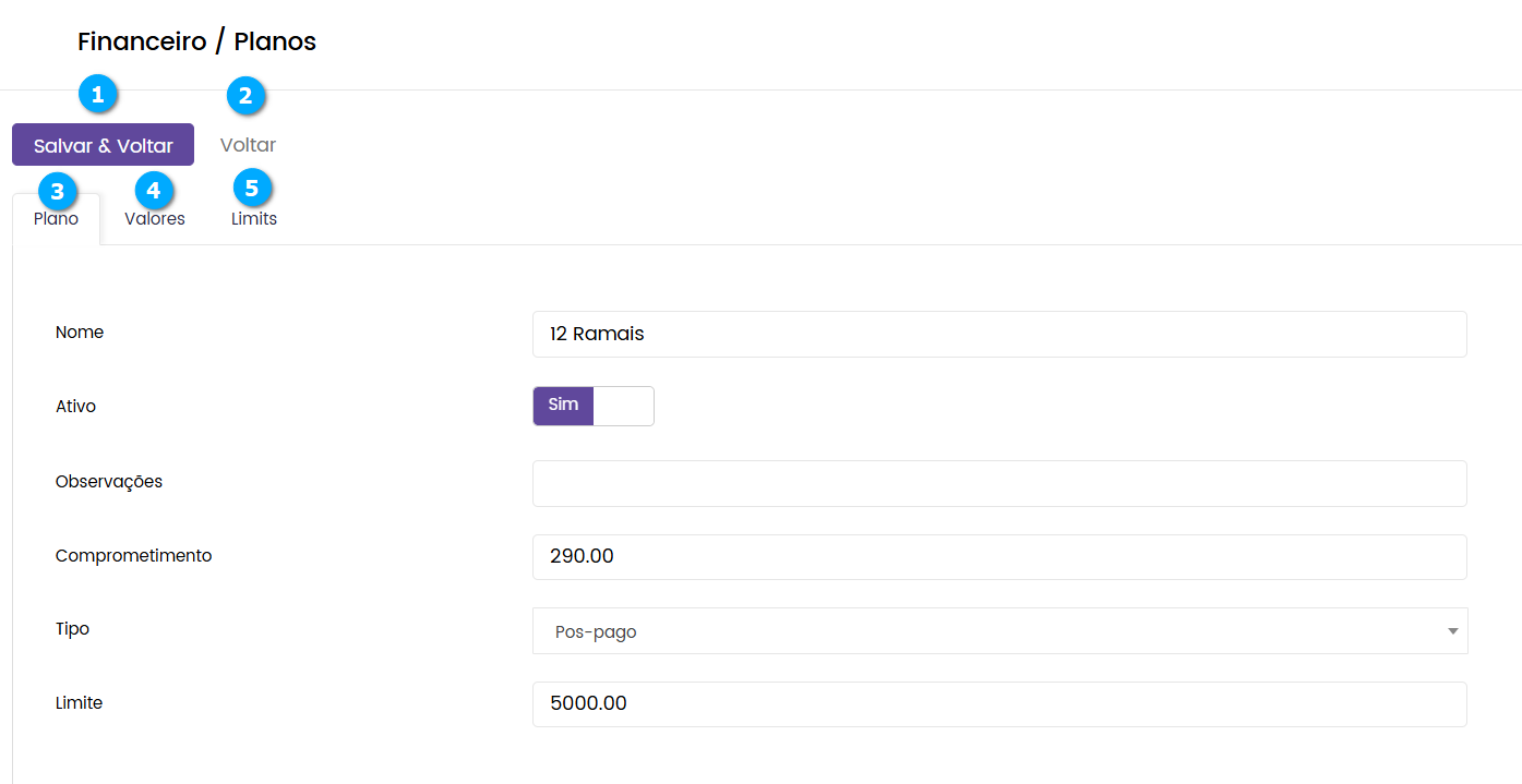 Ativo (3) - botão para definir se o plano esta ativo ou não