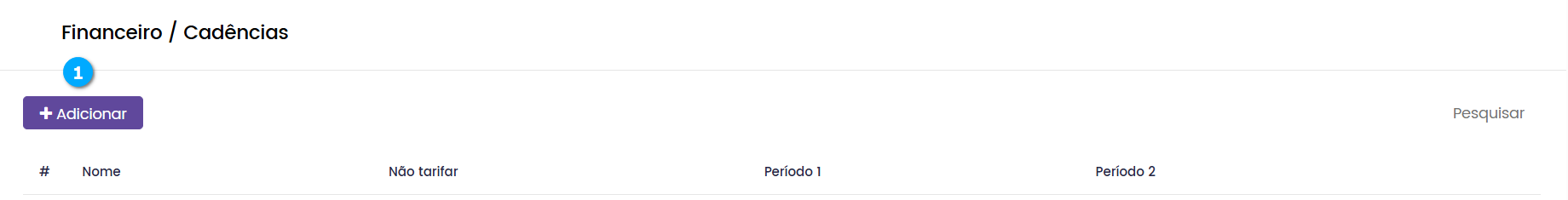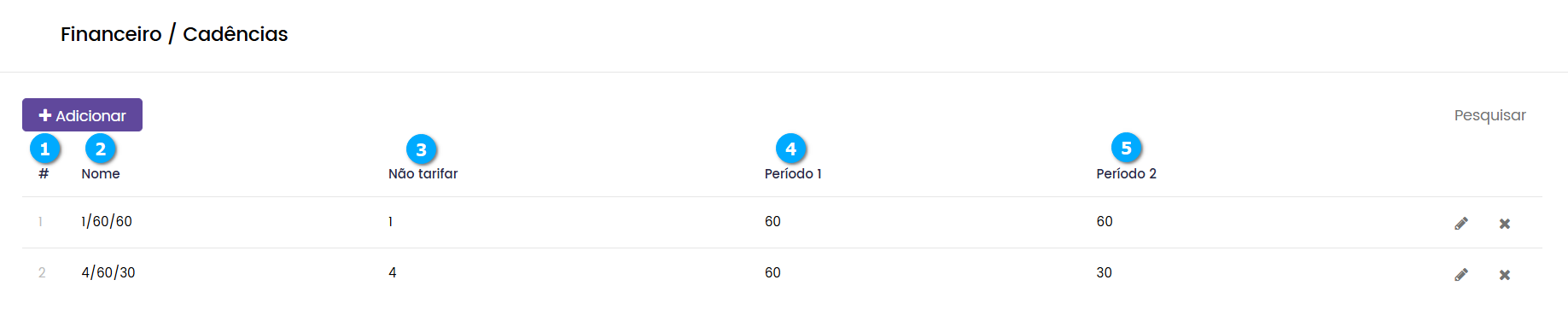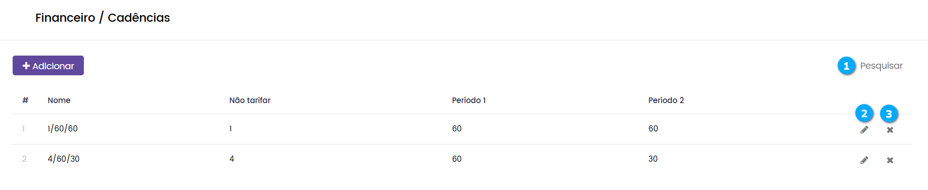Pesquisar (1) - botão para pesquisar e localizar a cadência que desejamos administrar