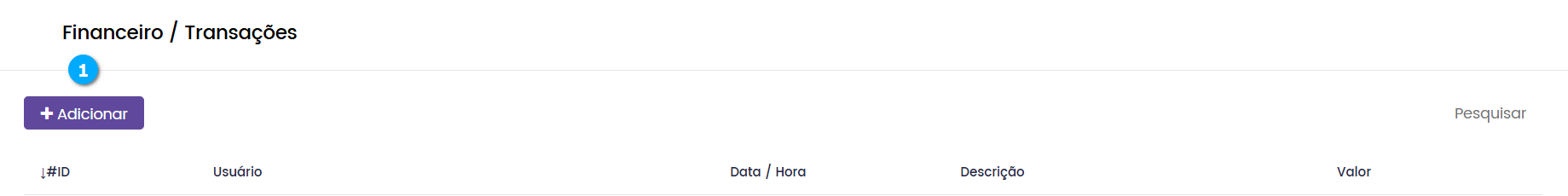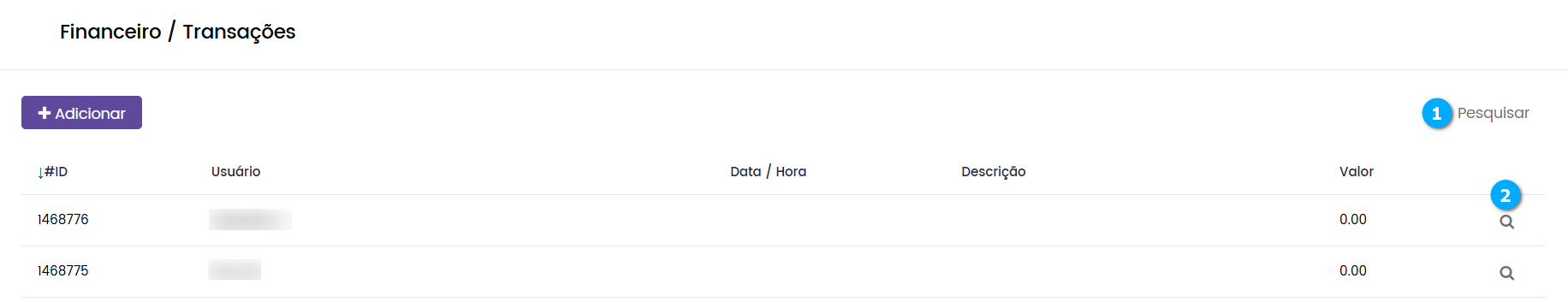 Pesquisar (1) - botão para pesquisar e localizar a transação que desejamos administrar